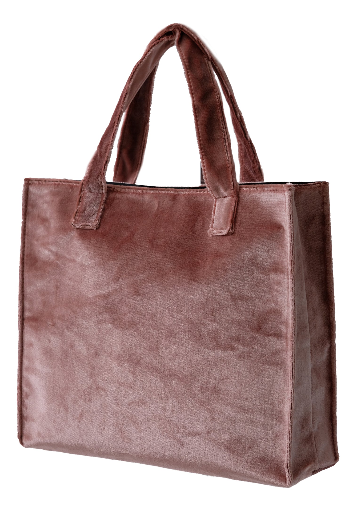 Questa shopper in velluto rosa antico unisce un design essenziale a una linea pulita, creando un accessorio elegante e versatile.